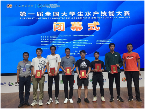 2019年11月22日至24日,由教育部高等学校水产类教学指导委员会与水产学科国家级实验教学示范中心联席会主办的第一届全国大学生水产技能大赛在广东海洋大学举行。我校代表队获一等奖1项,二等奖5项。