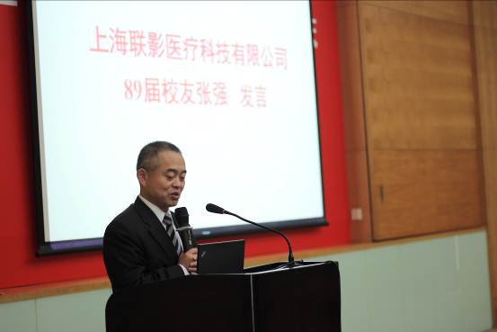 会上,1989届校友、上海联影医疗科技有限公司总裁张强发言,他与大家分享了自己在交大的求学经历,介绍了联影与校、院之间的合作情况,并希望更多交大学子选择联影,共同为高端医疗设备的国产化而奋斗。