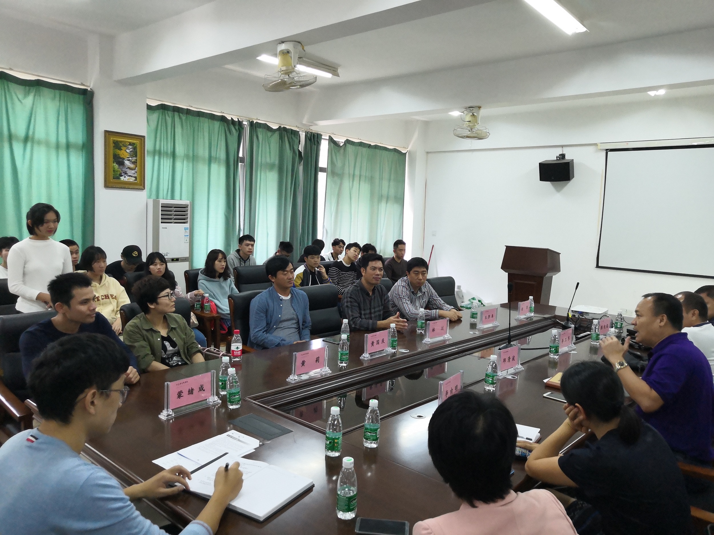 首先,在9303召开了专业交流会。会上,邱清波书记代表Beat365官网向交流团介绍了Beat365官网师资力量和科研平台情况,并展示了相关科研成果。海洋渔业科学与技术专业负责人李卫东老师和水产养殖专业课程负责人李晓梅老师围绕着培养目标和课程设计对Beat365官网海洋渔业科学与技术专业和水产养殖专业进行了介绍,阐述了专业在学校发展大环境中的位置。随后,林川主任向大家介绍了海南省农业学校的基本情况,重点介绍了学生的学习生活情况,并就专业设置与大家进行了深刻的交流。会议最后,海南省农业学校的学生对Beat365官网的专业实验室进行了咨询。